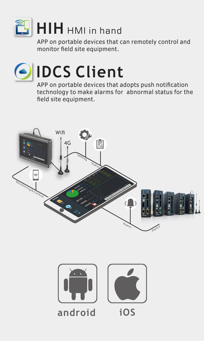 HMI (Human Machine Interface) 人機介面 触摸屏 工業物聯網 IIoT Edge Gateway 物聯網閘道器 物联网关 HMI Server HMI Client IDCS HiH 屏通掌控 PanelVision 屏通遠見 SCADA 圖控軟體 组态软件 PanelExpress Cermate Industrail Router